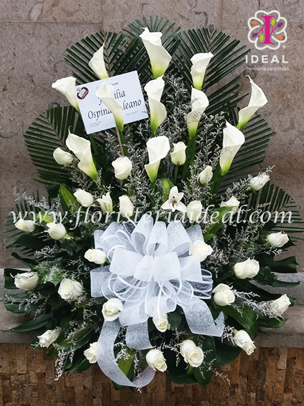 Bello arreglo floral en forma de abanico elaborado con bellos cartuchos, hermosas rosas, y elegantes follajes acompa?ado de lindo mo?o en interlon y encaje + tarjeta para esta ocasion.