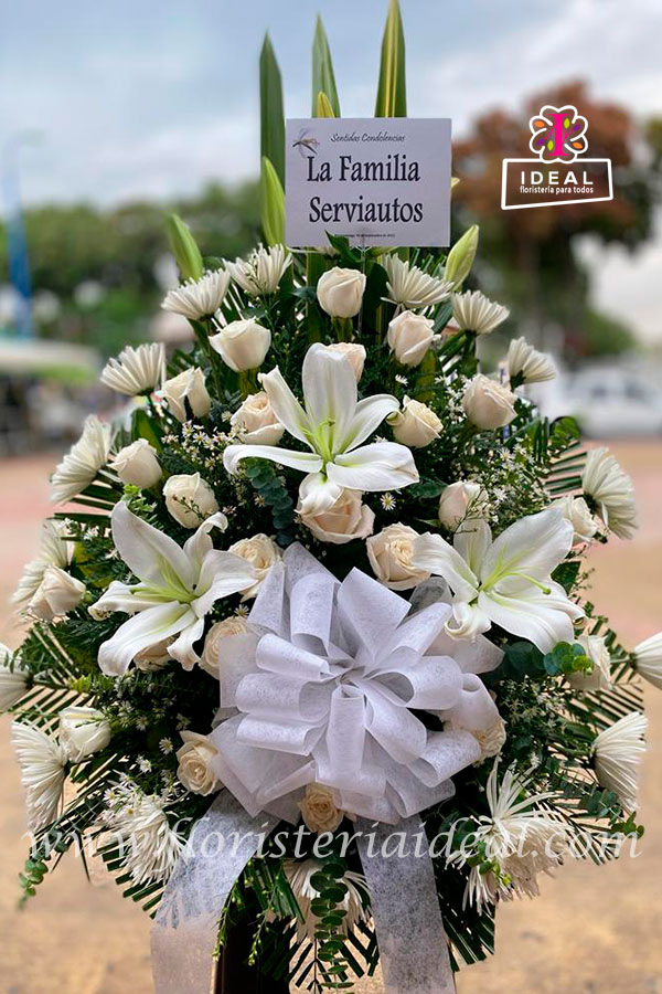 Delicado arreglo floral elaborado con lindos hortensias, cartuchos, rosas, lirios, acompañado de lin
