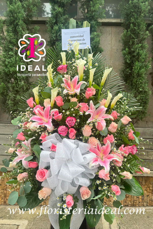 hermoso abanico funebre elaborado en tonos rosados
