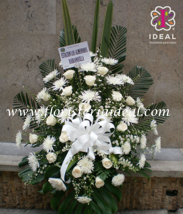 arreglo para condolencia con crisantemas, rosas, y follajes